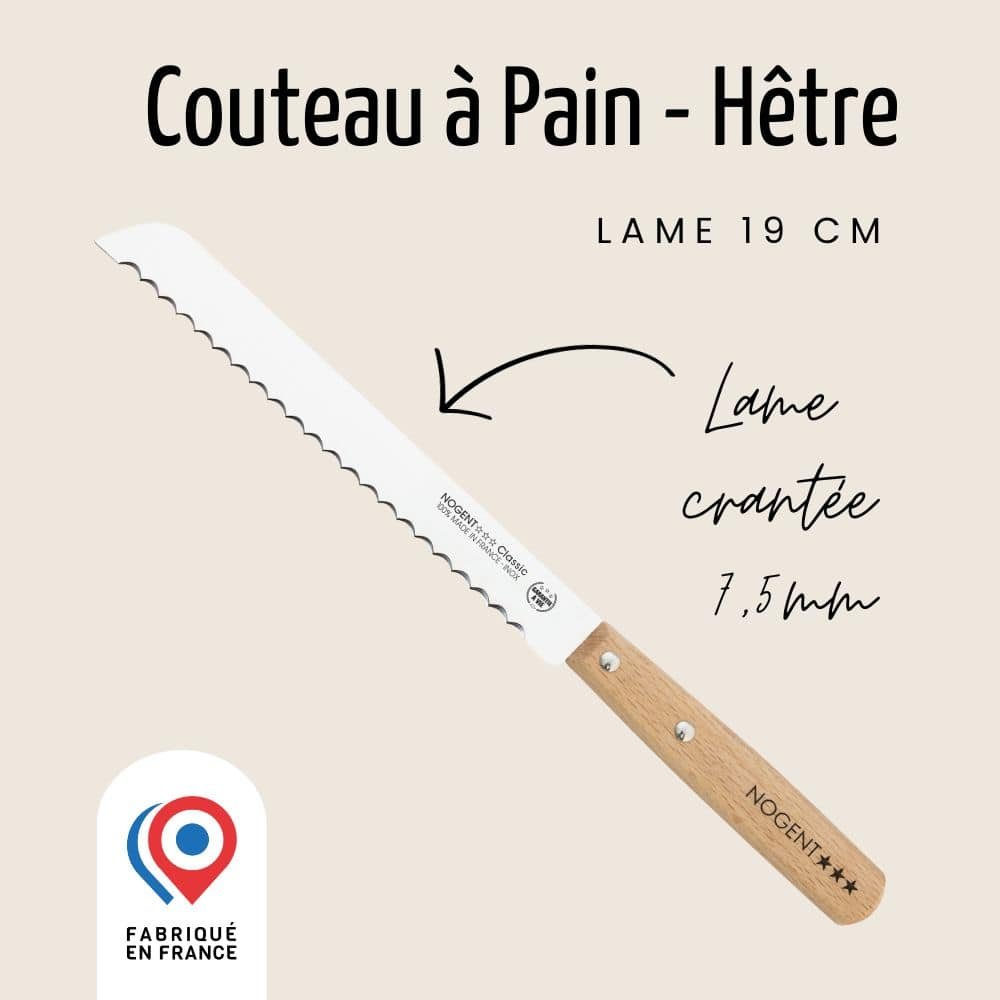 La lame crantée de 7,5 mm permet une coupe précise à travers les croûtes les plus résistantes, tout en préservant la tendresse de la mie. Que ce soit pour préparer des tartines de petit-déjeuner ou des sandwiches gourmets, ce couteau pain bois assure une performance fiable à chaque utilisation.