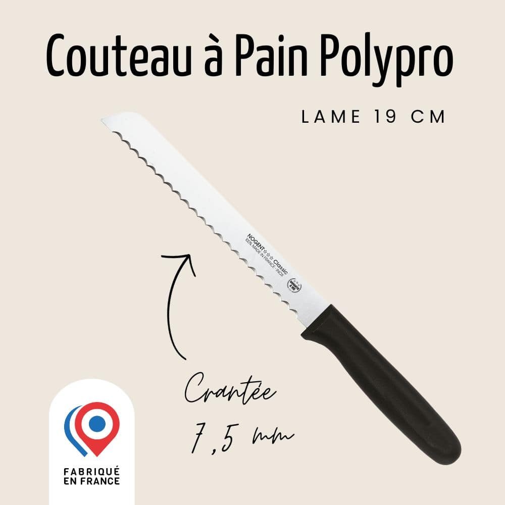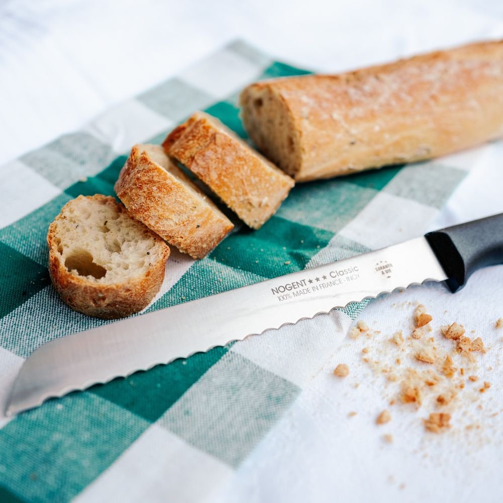 Découvrez notre grand couteau à pain lame crantée 7,5mm, le compagnon parfait pour vous faciliter la découpe de toutes sortes de pains.