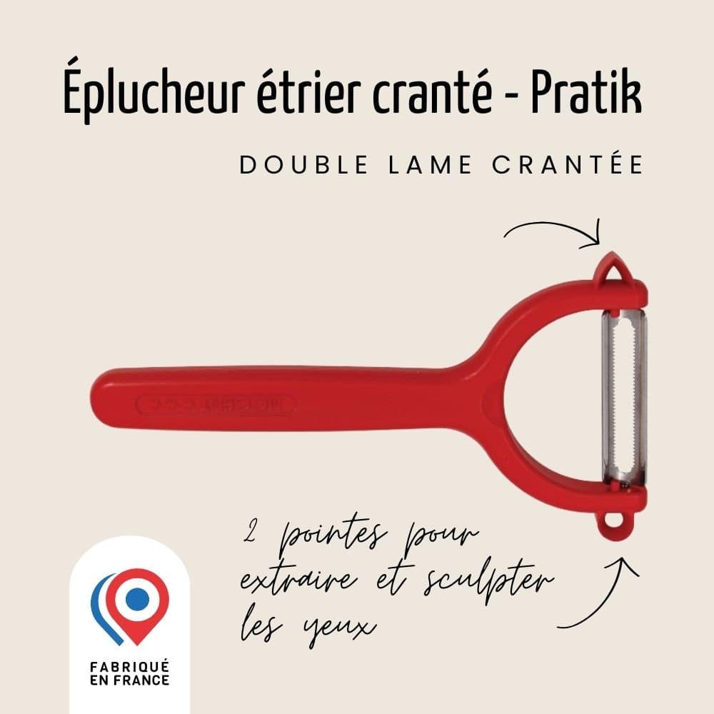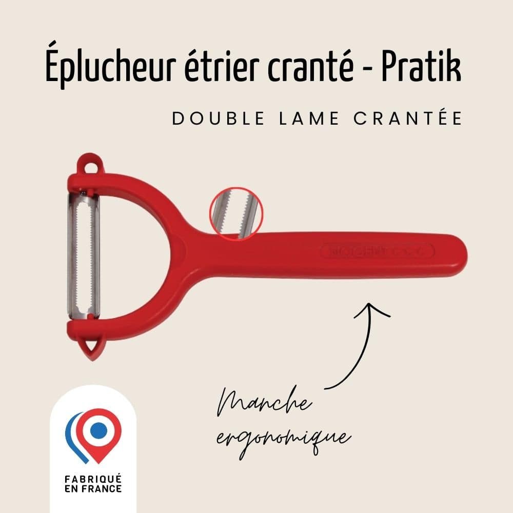 Découvrez notre éplucheur à étrier cranté innovant, de forme « Y », doté d’une double lame crantée, conçu pour simplifier votre expérience d’épluchage de fruits et de légumes à la chair tendre. Sa caractéristique principale réside dans ses deux lames crantées qui facilitent l’incision parfaite de la peau, permettant un épluchage efficace sans sacrifier une partie de votre fruit ou de votre légume.
