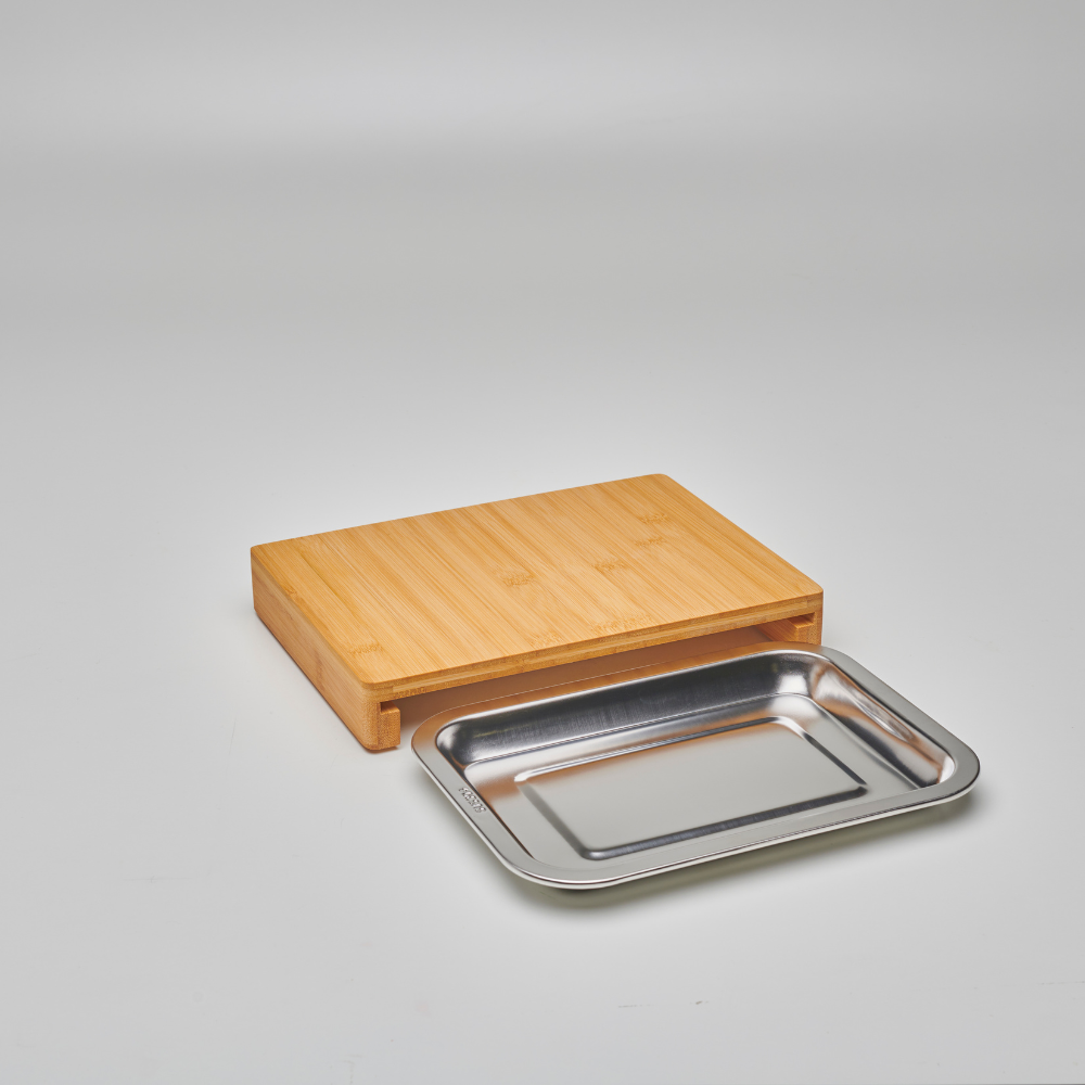 Équipée d’un tiroir amovible en inox, cette planche vous permet de recueillir les aliments découpés ou de jeter les épluchures et déchets directement dans le bac. Plus de va-et-vient à la poubelle, tout est centralisé pour un flux de travail optimisé. En acier inoxydable, le tiroir est résistant et polyvalent : il passe au four, idéal pour réchauffer certains ingrédients, et se nettoie facilement au lave-vaisselle pour gagner du temps après la cuisson.