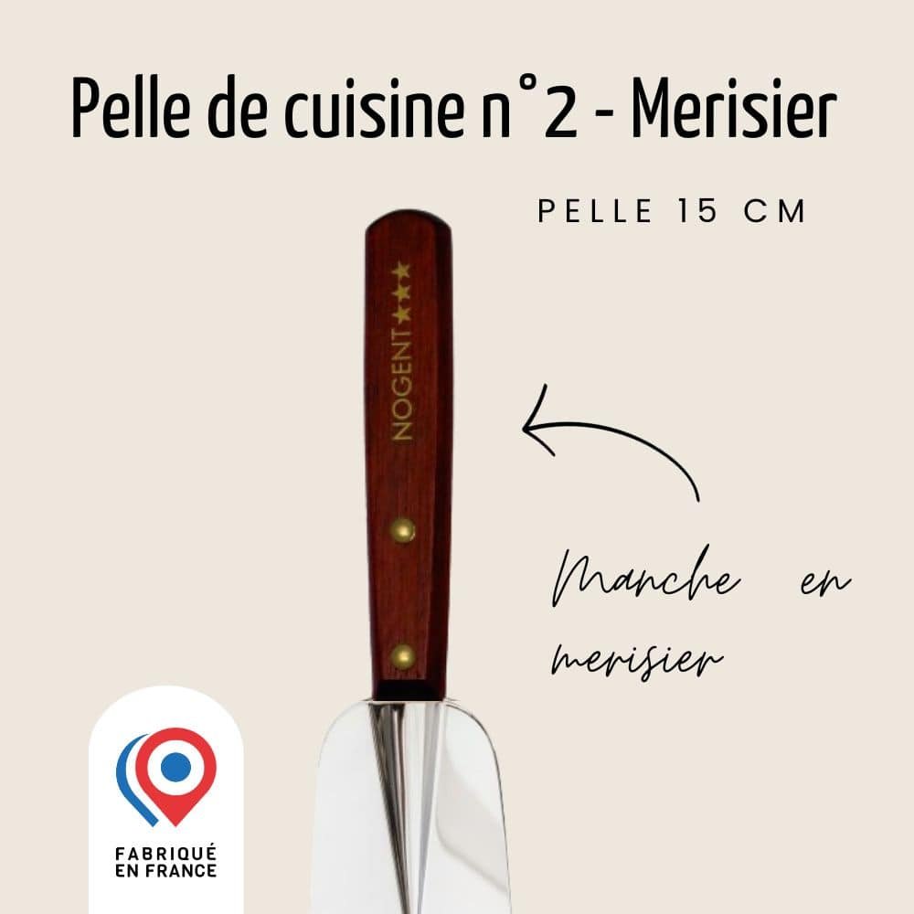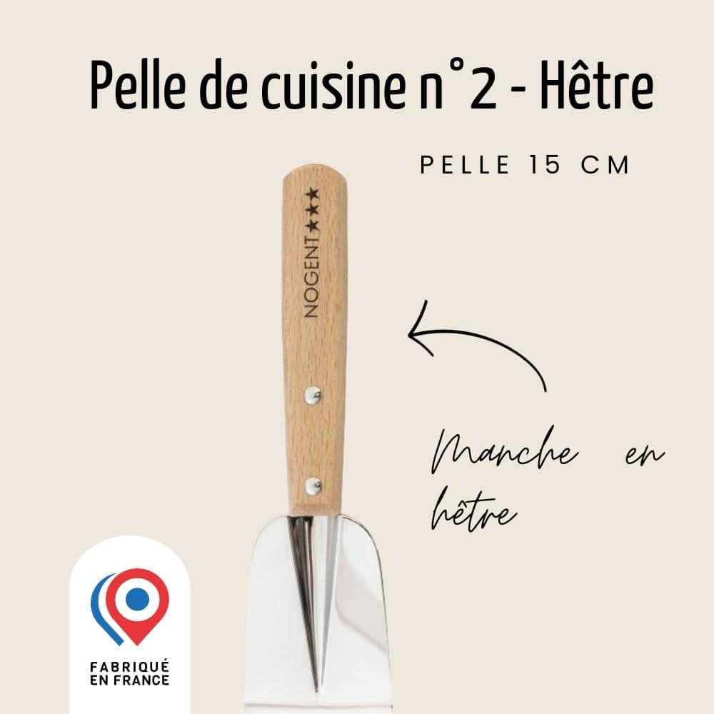 Découvrez la grande pelle de cuisine coudée Nogent ***, elle vous accompagnera dans la préparation, la manipulation et le service de tous vos aliments. Faite en acier inoxydable avec un manche en bois.